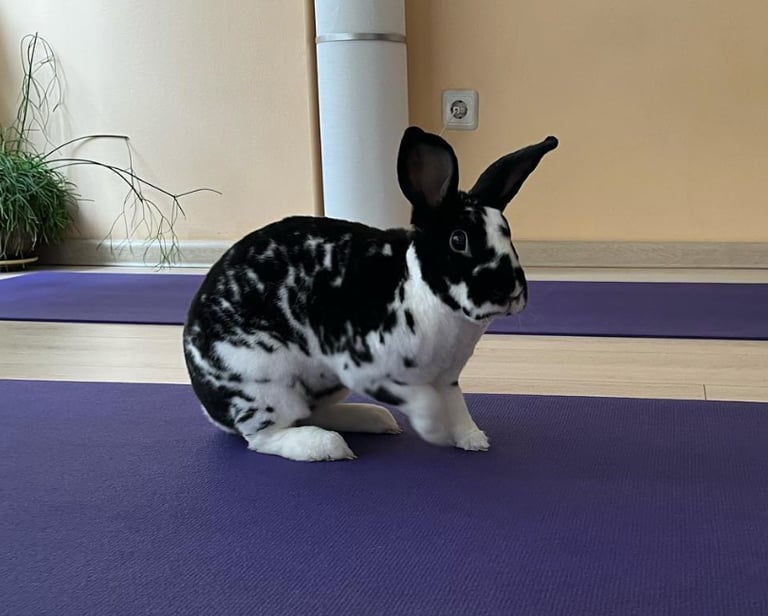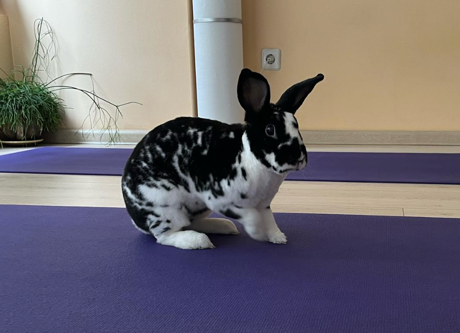 Koko attending a Bunny Yoga class, where he met his adoptive family.