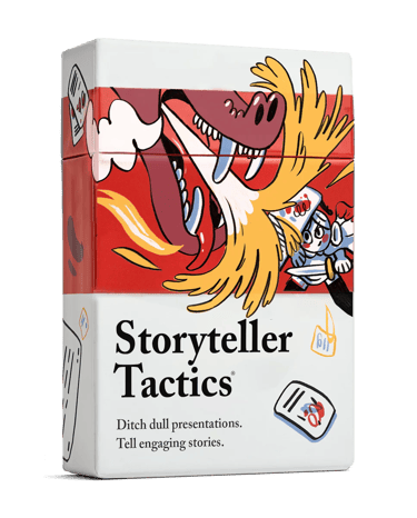 Storyteller Tactics is a set of 56 cards for brainstorming, planning, and delivering your content in a story format. If you need inspiration, these cards can help you find a proven structure for your information.