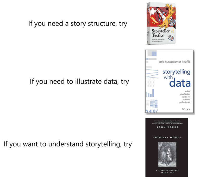 To try storytelling in your work, here are some resources that helped me: