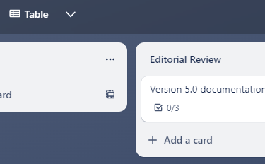 A third option is to have the editorial review as a checklist item in the main project card. As a checklist item, it forms part of the completion criteria for the project. An editor can be assigned to the task in the checklist.