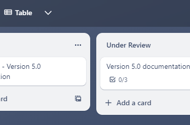 The original project card is placed in 'Under Review' until reviews are complete. The advantage of this approach is the tracking and flexibility you get with a new card.